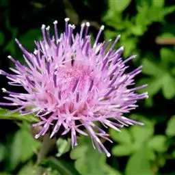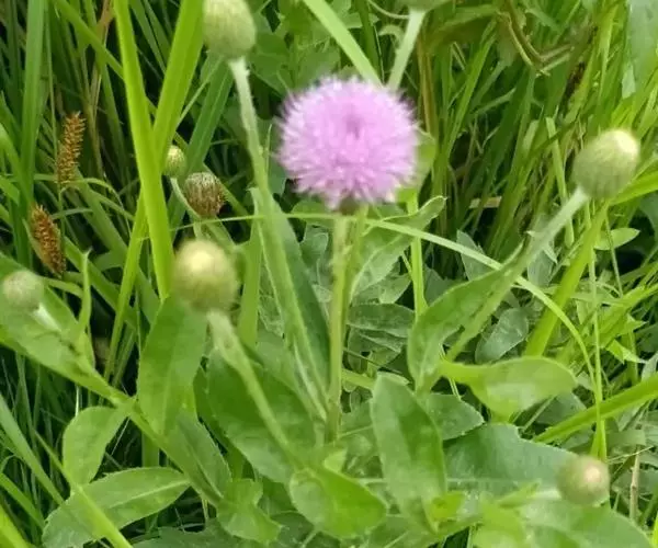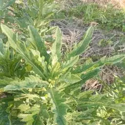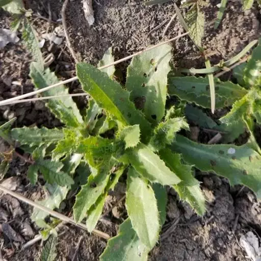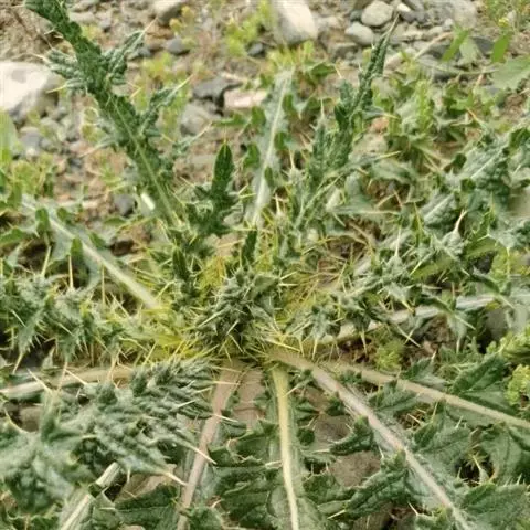 【性状】该品茎呈圆柱形,有的上部分枝,长5-30cm,直径0.2-0.5cm;表面灰绿色或带紫色,具纵棱及白色柔毛;质脆,易折断,断面中空。叶互生,无柄或有短 小蓟幼苗 柄;叶片皱缩或破碎,完整者展平后呈长椭圆形或长圆状披针形,长3-12cm,宽0.5-3cm;全缘或微齿裂至羽状深裂,齿尖具针刺;上表面绿褐色,下表面灰绿色,两面均具白色柔毛。头状花序单个或数个顶生;总苞钟状,苞片5-8层,黄绿色;花紫红色。气微,味微苦。
