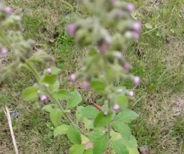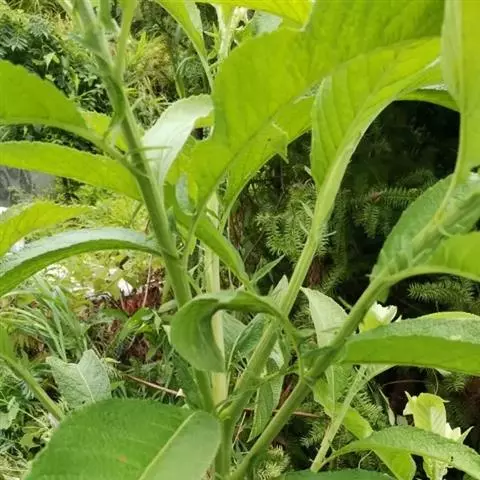 茎:茎直立,高60-90厘米,分枝或少有不分枝,具沟纹,被开展的白色长柔毛,杂有具柄腺毛,节间长3-5厘米。