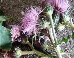 花:头状花序多数,无或有短柄,径3-5毫米,通常3-5个簇生,密集成聚伞状花序,再排成大圆锥花序,花序柄长达1厘米,被密长柔毛;总苞圆柱形,长约5毫米,总苞片近4层,草质,紫色至淡红色,长于花盘,花后反折,外层线形,长约3毫米,顶端渐尖,背面被密柔毛,杂有腺体,中层与外层同形,长约5毫米,边缘干膜质,背面被疏毛,内层狭,长于外层2倍,顶端锐尖;花托多少扁平,径1-2.5毫米,蜂窝状,无毛。花紫红色或花冠下半部淡白色;雌花多数,花冠细管状,长4-5毫米,檐部3齿裂,裂片无毛;两性花约10个,花冠管状,长约5毫米,向上渐增大,檐部5浅裂,裂片近三角形,顶端圆形或短尖,具乳头状突起及短柔毛。