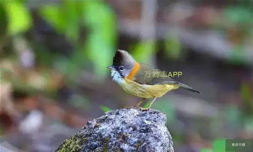 纹喉凤鹛(学名:Yuhina gularis):小型鸟类,体长13-16厘米。头顶和羽冠暗褐色或褐灰色,上体橄榄褐色,飞羽黑褐色,外侧次级飞羽表面橙黄色,构成一块纵形翼斑,极为醒目。颏、喉淡棕白色,具黑色纵纹,腹和尾下覆羽橙黄色。