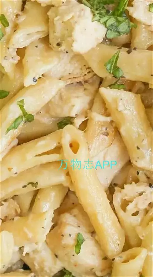 B.通心面100克、鸡胸肉150克、鲜奶油少许、辣椒粉少许、胡椒盐少许、起司粉少许、迷迭香少许、披萨起司少许、松子适量。