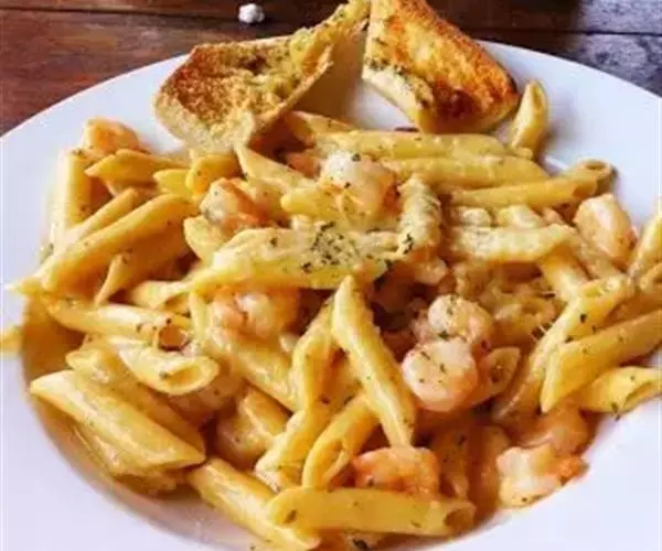 【原料】:意式空心面、鲜虾仁、洋葱、香草汁 调味料:姜片、橄榄油、白酒、盐