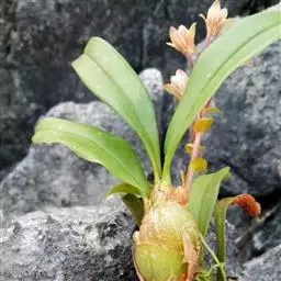 • 银带虾脊兰:植株无明显的根状茎。假鳞茎粗短,近圆锥形,粗约1.5厘米,具2-3枚鞘和3-7枚在花期…