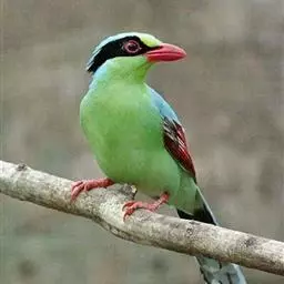 蓝绿鹊:中型鸟类,共有5个亚种。体长36-38厘米。尾长,嘴、脚红色。通体羽色主要为草绿色,…
