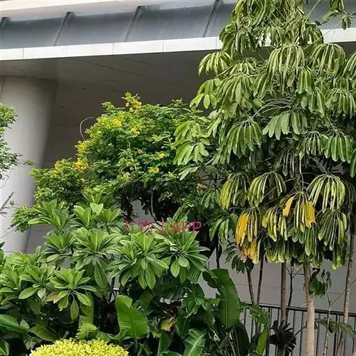 昆士兰伞木,吕松鹅掌柴 ,称昆石兰遮树,澳洲鸭脚木、方式叶鹅掌柴、伞树、大叶伞。叶片阔大,柔软下…