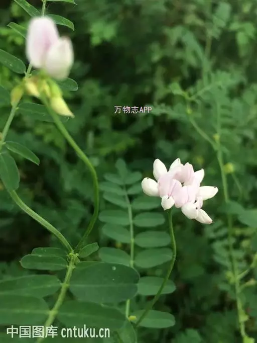 多年生草本,茎直立,粗壮,多分枝,疏展,高50-100厘米。茎、小枝圆柱形,具条棱,髓心白色,幼时稀被白色短柔毛,后变无毛。奇数羽状复叶,具小叶11-17 (-25);托叶小,膜质,披针形,长3毫米,分离,无毛;叶柄短,长约5毫米,无毛;小叶薄纸质,椭圆形或长圆形,长15-25毫米,宽4-8毫米,先端具短尖头,基部近圆形,两面无毛;侧脉每边4-5条,可见,小脉不明显;小托叶小;小叶柄长约1毫米,无毛;