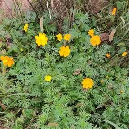 孔雀草菊科、万寿菊属一年生草本植物。茎直立,分枝斜展。叶羽状分裂,头状花序单生,管状花花冠黄色,…