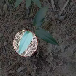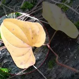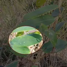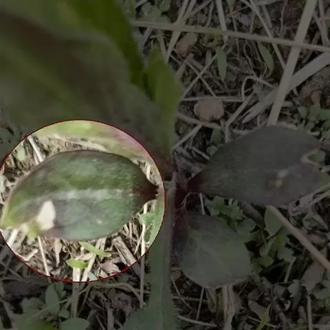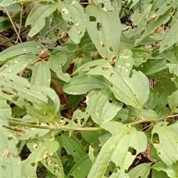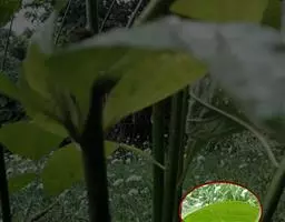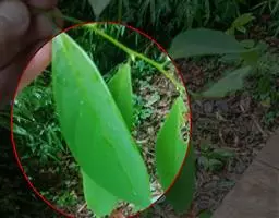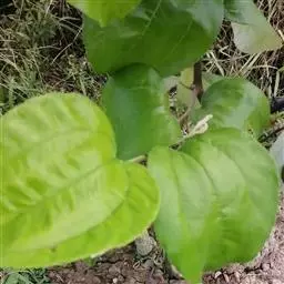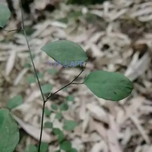 叶纸质,卵形、卵状披针形或近圆形,长1.5-4(-6)厘米,宽1.2-3.5(-5)厘米,下面稍苍白色或有时有粉尘状物;叶柄长5-12毫米,向基部渐宽成鞘状,背面有多条纵槽,无卷须,脱落点位于近顶端。