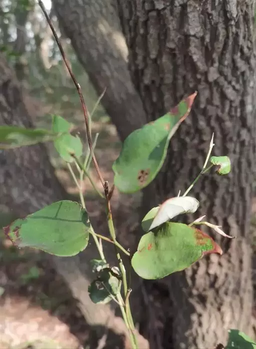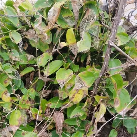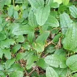 菝葜,菝葜科菝葜属 多年生藤本落叶攀附植物,茎干较粗,嫩白色,呈圆柱形,表面带有小刺;叶子较大,…