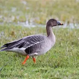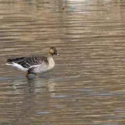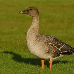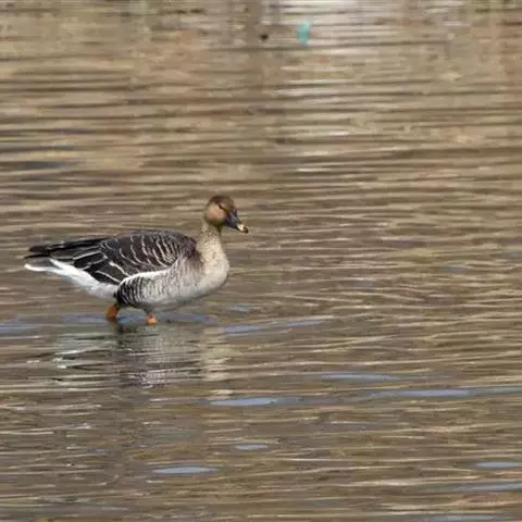 豆雁,雁形目鸭科。成鸟头、颈、背灰褐色,带淡黄色羽缘;尾上覆羽白色,尾羽黑褐色带白端,…