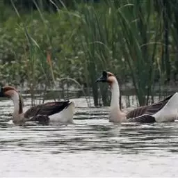 斑头雁是雁形目鸭科雁属鸟类,又称白头雁、黑纹头雁。通体大都灰褐色,头和颈侧白色,…