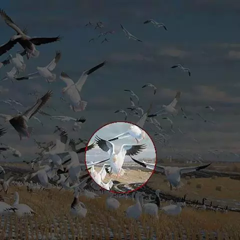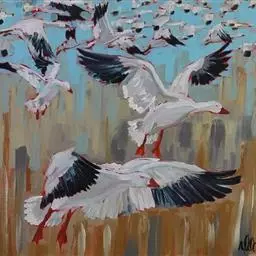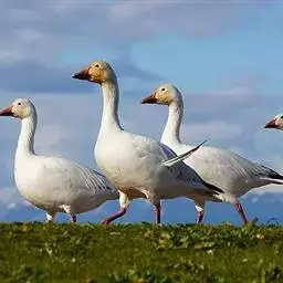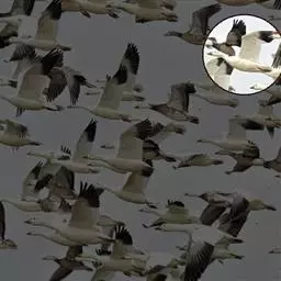 雪雁是鸭科雁属鸟类,雁属中体形大,个体重的鸟类。羽毛洁白,翼角黑色。飞行时双翼拍打用力,振翅频率高。…