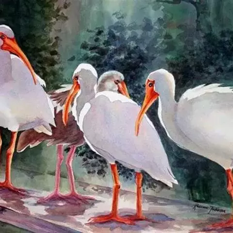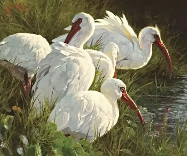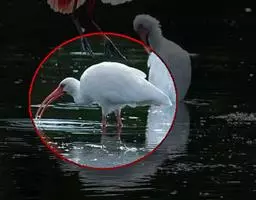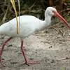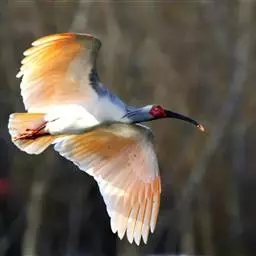 美洲白鹮(学名:Eudocimus albus):是一种大型涉禽。体长56-58厘米,体重750-1050克。头和颈裸出,喙很长,向下弯曲。飞行时颈和脚伸直,交替地拍动翅膀和滑翔。成年美洲白鹮,除了嘴和腿部是橘红色,翅膀末端有黑色外,全身都是白色的。常聚成大群繁殖,在灌丛和树林下层以树枝建造结实的巢。每窝产卵3-5枚,卵暗白色或具褐斑。