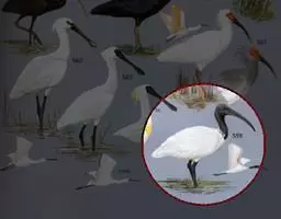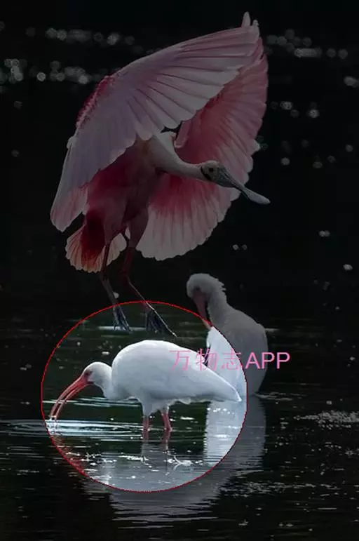粉红琵鹭:体高87厘米,翼展127厘米,体重1300克,寿命10年。是一种大型涉禽。脚很长,喙长而…