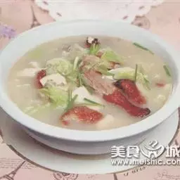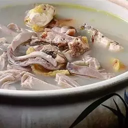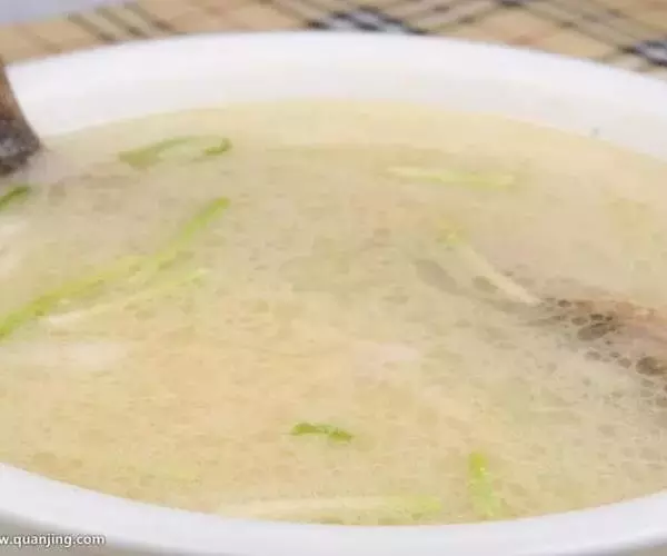 放入蛋块,再用旺火烧3分钟,见汤汁变白时,放入盐、味精,起锅装入汤盆内即成。