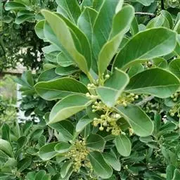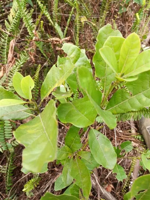 常绿小乔木或乔木,高3-15米;树皮灰色或灰褐色,内皮有粘质。小枝灰褐色,幼时有灰黄色绒毛。顶芽卵圆形,鳞片外面被灰黄色绒毛。叶互生,倒卵形、倒卵状长圆形或椭圆状披针形,长6.5-10(26)厘米,宽5-11厘米,先端钝或圆,基部楔形,钝或近圆,革质,幼时两面均有毛,老时上面仅中脉略有毛,下面有灰黄色绒毛或近于无毛,羽状脉,侧脉每边8-12条,直展,中、侧脉在叶上面微突,在下面突起;叶柄长1-2.6厘米,有灰黄色绒毛。