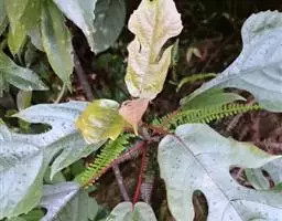 尾尖爬藤榕,攀援灌木,小枝具稀疏柔毛。叶厚纸质,披针形或卵状披针形,干时常皱折,顶端具尾状渐尖,基…
