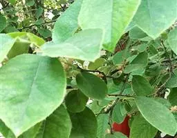 乔木,高达25-30米,胸径60-90厘米,树皮灰褐色,平滑,幼枝嫩叶和果被平贴毛,小枝褐色。叶薄革质,椭圆状倒卵形至椭圆形或长椭圆形,长10-14厘米,宽3.5-4.5厘米,先端渐尖或钝尖,基部楔形或钝形,全缘,表面深绿色,无毛,背面浅绿色,稍粗糙,幼时被柔毛,成长脱落,基生叶脉三出,侧脉4-8对;叶柄长2-3厘米;托叶卵状披针形,膜质,外面被微柔毛,长1.5-2厘米。