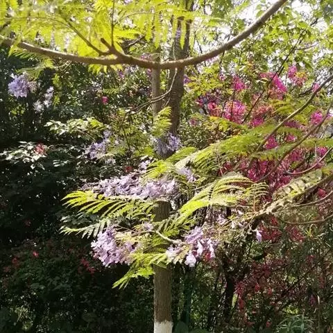 蓝花楹是紫葳科蓝花楹属的落叶乔木,叶对生,小叶椭圆状披针形至椭圆状菱形,顶端急尖,基部楔形;花蓝色,…
