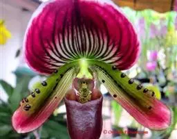 • 大花杓兰因其形状酷似一个口小肚大的囊袋,又名“大口袋兰”。花体呈紫红色,花朵直径5厘米至6厘米,…