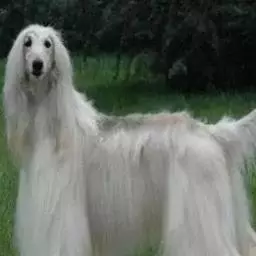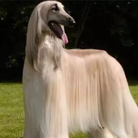 阿富汗猎犬全身披丝绢状的长毛,毛色鲜艳,呈多种颜色,背中线附近毛短,…