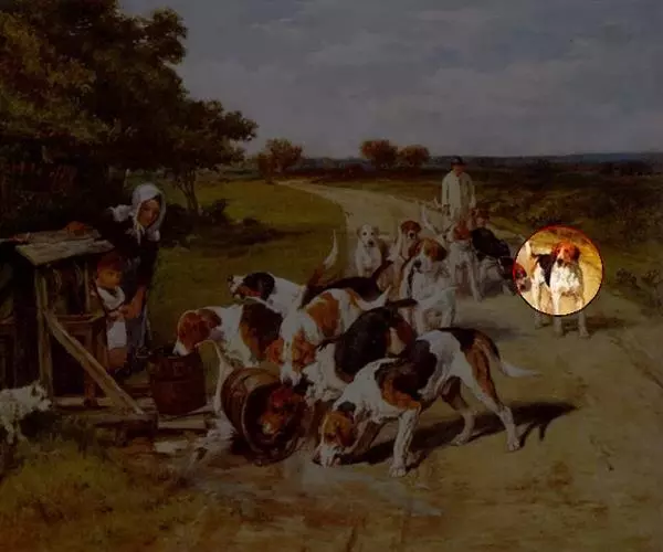 英国猎狐犬被精心饲养了150多年。由猎狐犬主人协会(英国)出版的优良品种登记簿可追溯到1800多年以前,并且对于每一个英国猎狐犬的主人来说,追溯它的血统是一件十分容易的事。英国猎狐犬的饲养掌握在猎犬的主人手中,这些人保留着最精心的饲养的记录。 在外观上,英国猎狐犬远比它的美国亲戚健壮,并且,可能没有比卡斯伯特·布拉德利所著的《弗兰克·吉拉德回忆录》中所引用的一个段落更能描述这种猎犬的一般外貌,在这本书中,他描绘了“拜利成尔·盖姆布勒”,一头他曾饲养过的最大的猎犬之一的猎狐犬。