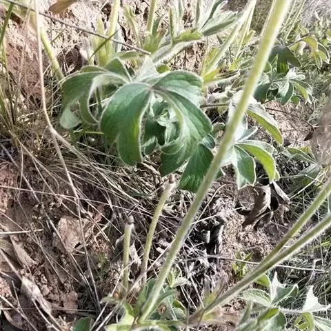 兴安白头翁 植株高25-40厘米。根状茎长达16厘米,粗5-7毫米。基生叶7-9,有长柄;叶片卵形,长4.5-7.5厘米,宽3-6厘米,基部近截形,三全裂或近似羽状分裂,一回中全裂片有细长柄,又三全裂,二回裂片深裂,深裂片狭楔形或宽线形,全缘或上部有2-3小裂片或牙齿,一回侧全裂片无柄或近无柄,不等三深裂,表面近无毛,背面沿脉疏被柔毛;叶柄长2.8-15厘米,有柔毛。