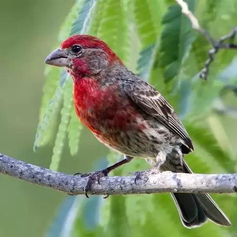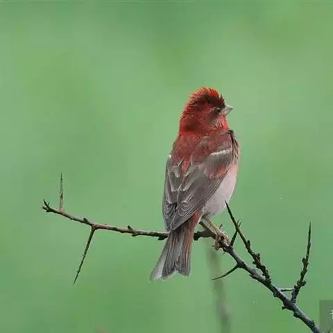 北朱雀,是燕雀科朱雀属鸟类。雄鸟额和头顶前部珠白色具窄的粉红色羽缘,…