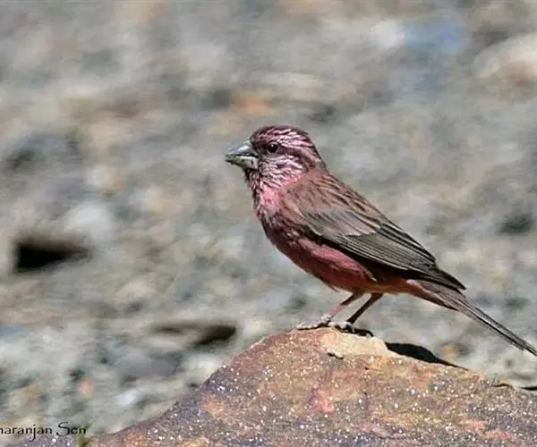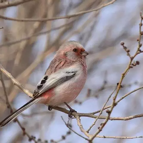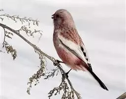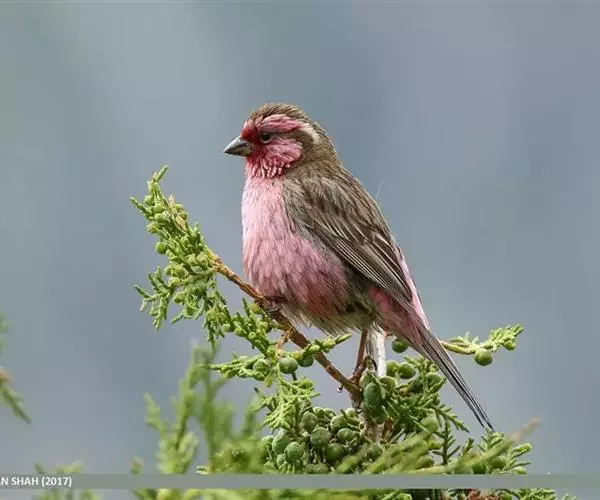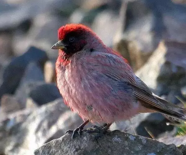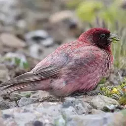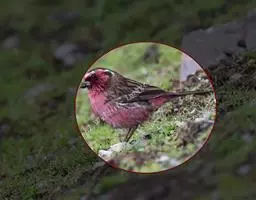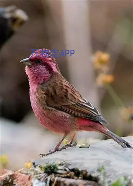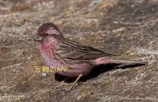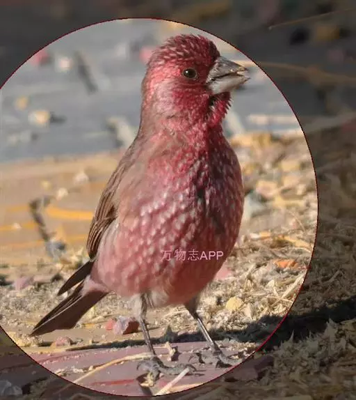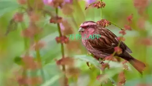 藏朱雀:全长约17-18厘米。雄鸟头部深红色具光辉,喉部暗红色具白色点斑;背部灰白色,各羽具玫瑰红…