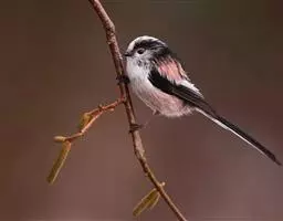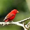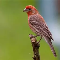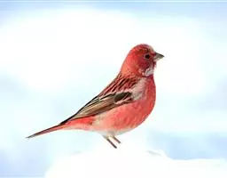 红腰朱雀:体长12-14厘米,小型鸟类。雄鸟前额和眉纹玫瑰粉红色,头顶和一宽的贯眼带深红褐色,背红…