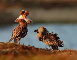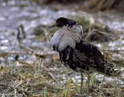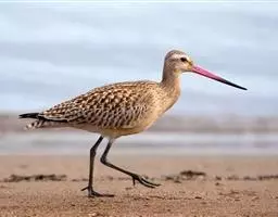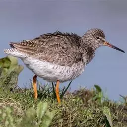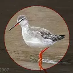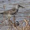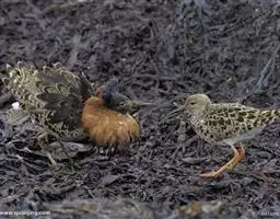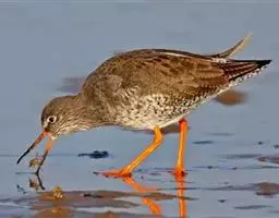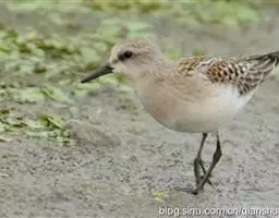 红脚鹬:体长28厘米,上体褐灰,下体白色,胸具褐色纵纹。飞行时腰部白色明显,次级飞羽具明显白色外缘。…