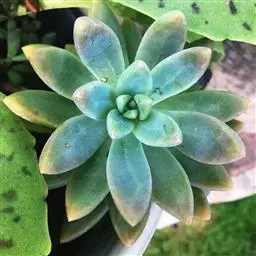 薄叶蓝鸟 叶片蓝绿色,叶尖红色,带粉,花型紧凑,非常漂亮。原产于墨西哥,现世界各地均有栽培。