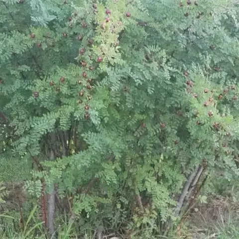 乔木,高达9米;主干高3-5米,上部分成多干,直伸或斜展,侧枝多,形成圆球形树冠。