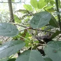这方面,金钱榕与无花果很类似,也开花结果,只是隐头花序球是绿色的,很小而且隐藏在叶腋处,不易被觉察,等变为果实长大后才看得见。