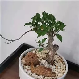 金钱榕具有较强的顶端优势, 侧芽一般不易萌发, 若不进行整形, 极易直立向上生长, 形成直立状的造型。当生长过于高大时, 不便于室内摆放, 而且砧木抽生枝条致造型凌乱, 难再登厅堂。下面介绍几种简便易行的抑制其高度生长, 促发侧枝保持良好造型的方法。
