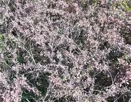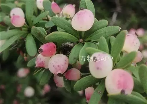 金花小檗(学名:Berberis wilsonii Hemsl.):枝常弓弯,老枝棕灰色,幼枝暗红色,具棱,散生黑色疣点;茎刺细弱,三分叉,淡黄色或淡紫红色。叶革质,倒卵形或倒卵状匙形或倒披针形,先端圆钝或近急尖,有时短尖,基部楔形,上面暗灰绿色,网脉明显,背面灰色,常微被白粉,网脉隆起;近无柄。花簇生;花梗棕褐色;花金黄色;小苞片卵形;萼片2轮,外萼片卵形,内轮萼片倒卵状圆形或倒卵形;花瓣倒卵形,先端缺裂,裂片近急尖;雄蕊长约3毫米,药隔先端钝尖。浆果近球形,粉红色,顶端具明显宿存花柱,微被白粉。花期6-9月,果期翌年1-2月。