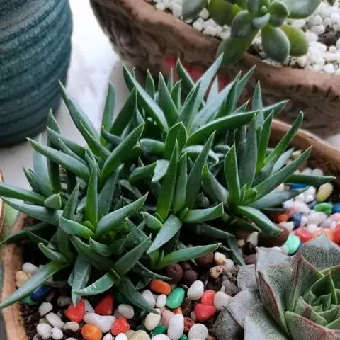 照波,番杏科多肉植物、此种生长较快,栽培容易,细长的浓绿色叶3厘米左右,开黄色花。…