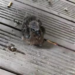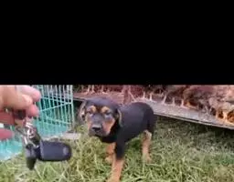 后腿比较短,骨骼和肌肉强壮,角度适中;从后面看,后躯笔直。狼爪可能已经切除。足爪与前肢相同。缺点与前肢同。
