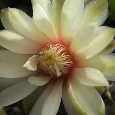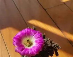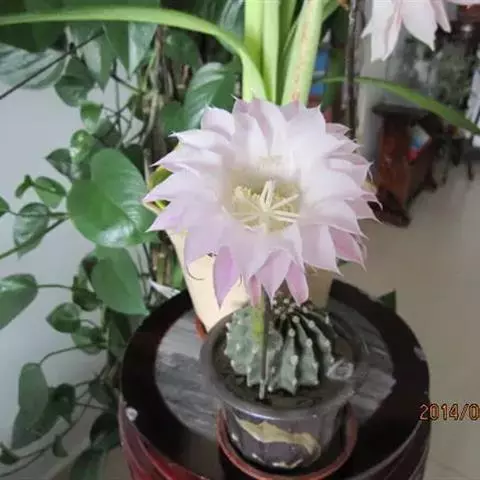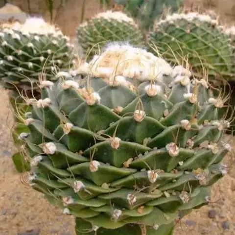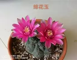 球体特殊,形似山核桃,相当有趣;花时色彩绚丽,繁花如锦,十分夺目;又适宜盆栽,是许多爱好者喜欢收集的品种。 幼株圆筒形,成年株椭圆形,有时也会萌生仔球。体色深绿色,球径5-6厘米,高8-10厘米,具5-6个肥厚的直棱,黄白色毛状刺1-3枚,易脱落。春季至初夏侧生粉红、紫粉、紫或白等色漏斗状的花,花径5-6厘米。