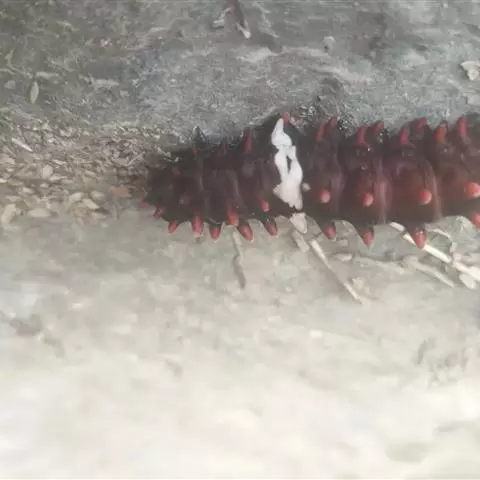 前胸背面的1对红色小突起左边1个尖。