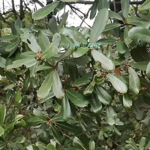 乌冈栎,壳斗科, 栎属,常绿乔木,高达10米或成灌木状。叶互生,革质。果长椭圆形,花期3-4月,果熟期9-10月。常生于山地岩石上。