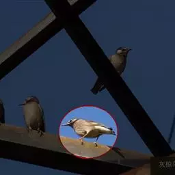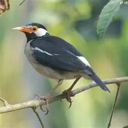 斑椋鸟:是中等体型的黑白色椋鸟,体长24厘米。头顶、头侧、翼斑、腰及腹部白色,喉、胸及上体余部黑色,…