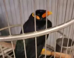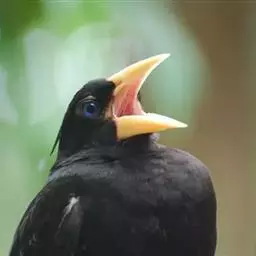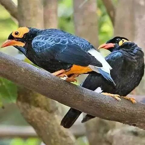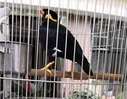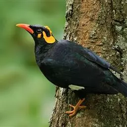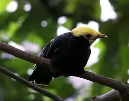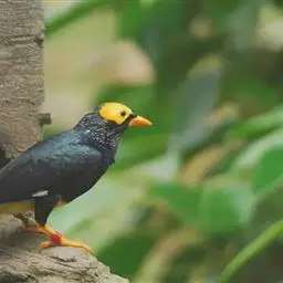 金冠树八哥为椋鸟科树八哥属的鸟类。体长约23厘米,闪辉黑色。特征为具翼斑及颏黄色,脸颊裸露皮肤粉黄色。…