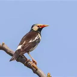 黑冠椋鸟:中等体型的椋鸟,体长21厘米。雄鸟前头为黑色并具金属光泽;头顶、颈项和羽冠亦为黑色;翅及翅上覆羽黑色;尾羽褐色,具白色端斑;上体灰色;下体淡黄褐色。雌鸟形态与雄鸟相似,但羽冠较雄鸟为短。虹膜蓝白或乳黄色;嘴峰铅绿色;跗蹠及爪柠檬黄色。头具黑色羽冠,与其他椋鸟易于区别。主要栖息于开阔落叶阔叶林和灌木林中以及多营巢于树洞中或其他洞穴内。属群鸟共栖。常4-8只结小群活动。鸣声清脆响亮。食物有果实和浆果,偶食花蜜和小型昆虫。分布于印度、中国云南耿马。常见于印度城镇、村庄及铁路沿线。偶见于中国云南西南部和西藏东南部。