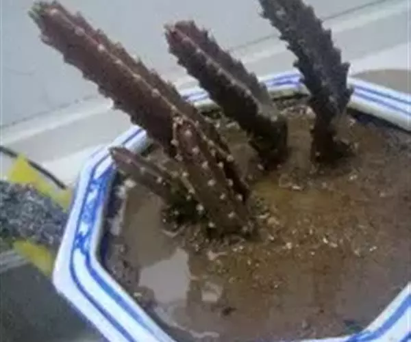 夏季高温时植株生长迟缓或完全停止,此时可将植株放在通风凉爽处养护,稍加遮荫,并节制浇水,否则会因土壤水大引起肉质茎腐烂。春、秋季节的生长期宜保持土壤湿润,空气干燥时可喷些水,以免因缺水使肉质茎皱缩,影响观赏。每半个月施一次腐熟的稀薄液肥或“低氮高磷、钾”的复合肥。在强烈的阳光下肉质茎会出现红色,故宜在光线明亮又无直射阳光处养护。冬季要多见阳光,并节制浇水,保持10℃以上的室温。每2-3年翻盆一次,盆土宜用含腐殖质丰富、疏松肥沃,且排水良好的沙质土壤。该种根系较浅,应用浅盆裁种,并注意支撑,以防倒伏。