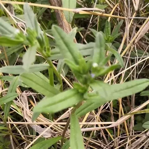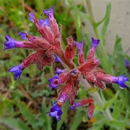 多年生草本,根富含紫色物质。茎通常1-3条,直立,高40-90厘米,有贴伏和开展的短糙伏毛,上部有分枝,枝斜升并常稍弯曲。叶无柄,卵状披针形至宽披针形,长3-8厘米,宽7-17毫米,先端渐尖,基部渐狭,两面均有短糙伏毛,脉在叶下面凸起,沿脉有较密的糙伏毛。