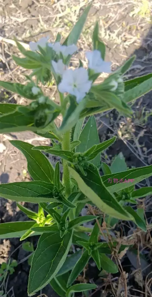 花序生茎和枝上部,长2-6厘米,果期延长;苞片与叶同形而较小;花萼裂片线形,长约4毫米,果实可达9毫米,背面有短糙伏毛;花冠白色,长7-9毫米,外面稍有毛,筒部长约4毫米,檐部与筒部近等长,裂片宽卵形,长2.5-3毫米,开展,全缘或微波状,先端有时微凹,喉部附属物半球形,无毛;雄蕊着生花冠筒中部稍上,花丝长约0.4毫米,花药长1-1.2毫米;花柱长2.2-2.5毫米,柱头头状。小坚果卵球形,乳白色或带淡黄褐色,长约3.5毫米,平滑,有光泽,腹面中线凹陷呈纵沟。花果期6-9月。