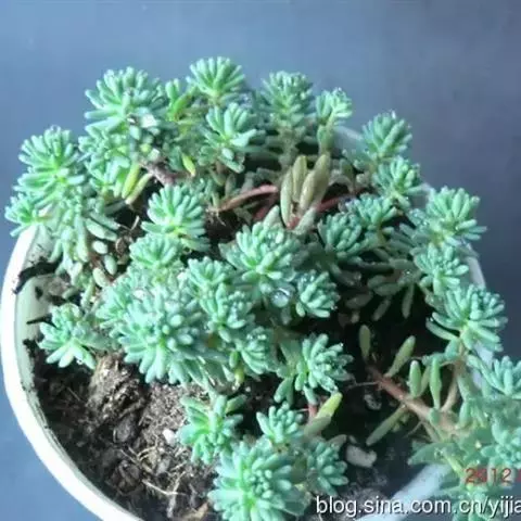 薄雪万年草别名矶小松,景天科景天属多年生草本植物,其细小的蓝绿色棒状叶片环绕生长于茎端,…