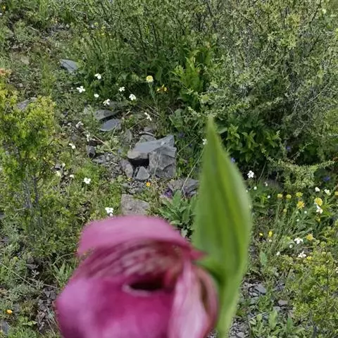 大花杓兰因其形状酷似一个口小肚大的囊袋,又名“大口袋兰”。花体呈紫红色,花朵直径5厘米至6厘米,…