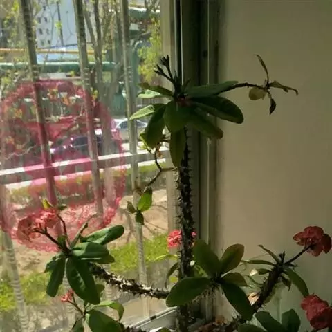 虎刺梅:别称铁海棠,是蔓生灌木植物。茎多分枝,长60-100厘米,直径5-10毫米,具纵棱,密生硬…